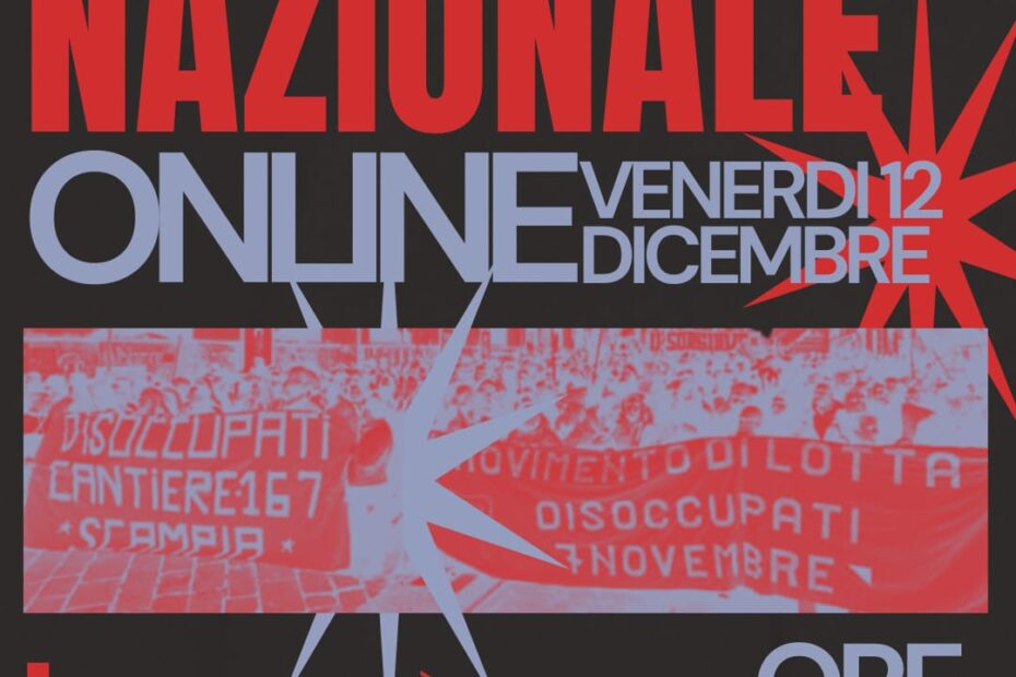Venerdí 12 Dicembre è fissata un’assemblea nazionale on line chiamata dai compagni e le compagne di Napoli a partire dalla lotta dei disoccupati organizzati.