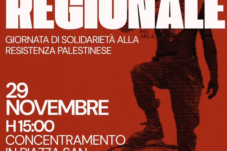 Per il 29 Novembre, giornata internazionale di solidarietà con il popolo palestinese, scendiamo in piazza a fianco della resistenza del popolo palestinese.