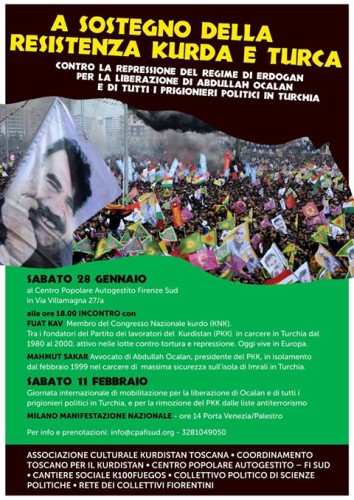 Sabato 28 GennaioA sostegno del ResistenzaKurda e TurcaLeggi tutto »Sabato 28 GennaioA sostegno del ResistenzaKurda e Turca