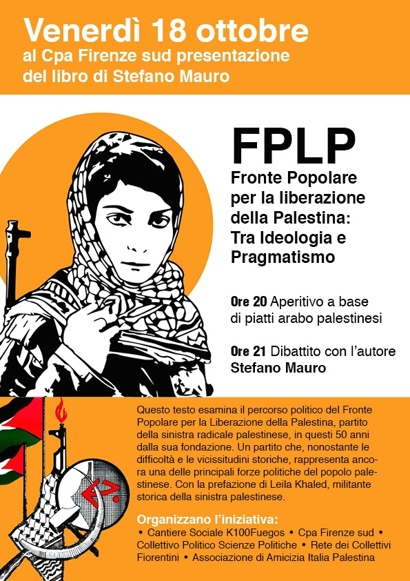 Alle ore 21.00 Dibattito con l’autore Stefano MauroOrganizzano l’iniziativa: Cantiere Sociale K100fuegos, Cpa Firenze sud, Collettivo Politico Scienze Politiche. Rete Collettivi Fiorentini, Associazione di Amicizia Italia Palestina