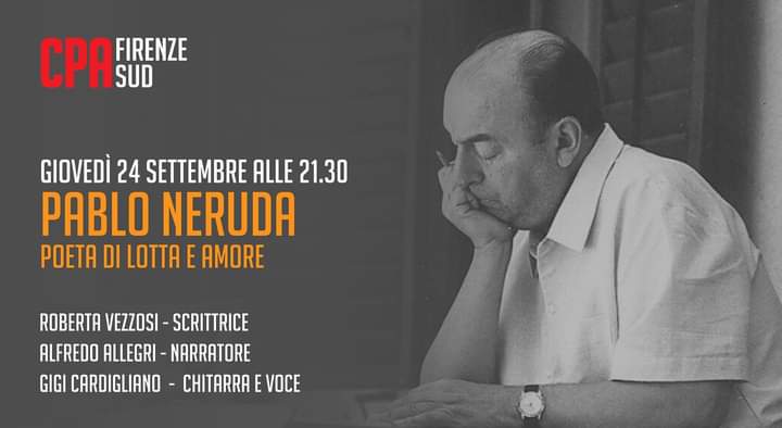 Giovedì 24 settembre Pablo Neruda, poeta di lotta e d’amoreLeggi tutto »Giovedì 24 settembre Pablo Neruda, poeta di lotta e d’amore
