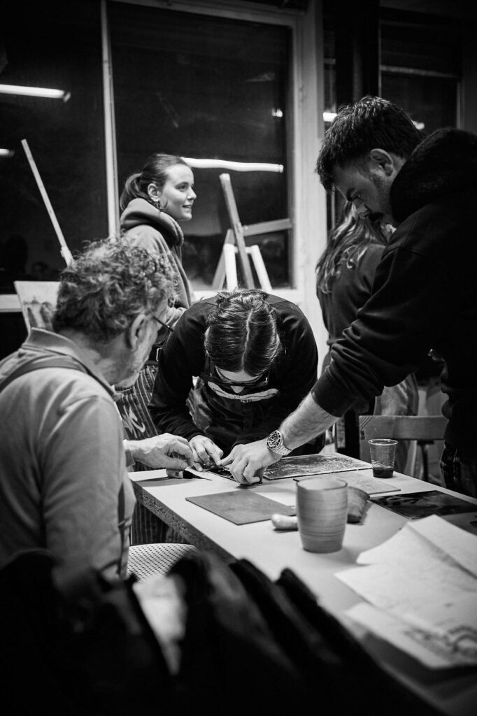 Al secondo piano del CPA Fi-Sud lo Spazio Arte è un luogo dedicato a chi vuole esprimersi attraverso la pittura, il disegno e l’arte grafica — aperto a tutte e tutti, senza bisogno di esperienza. Il CPA nasce dall’esigenza di costruire uno spazio sottratto alle logiche del mercato, dove la socialità sia un diritto e non una merce o un lusso: lo Spazio Arte è figlio di questa storia.
