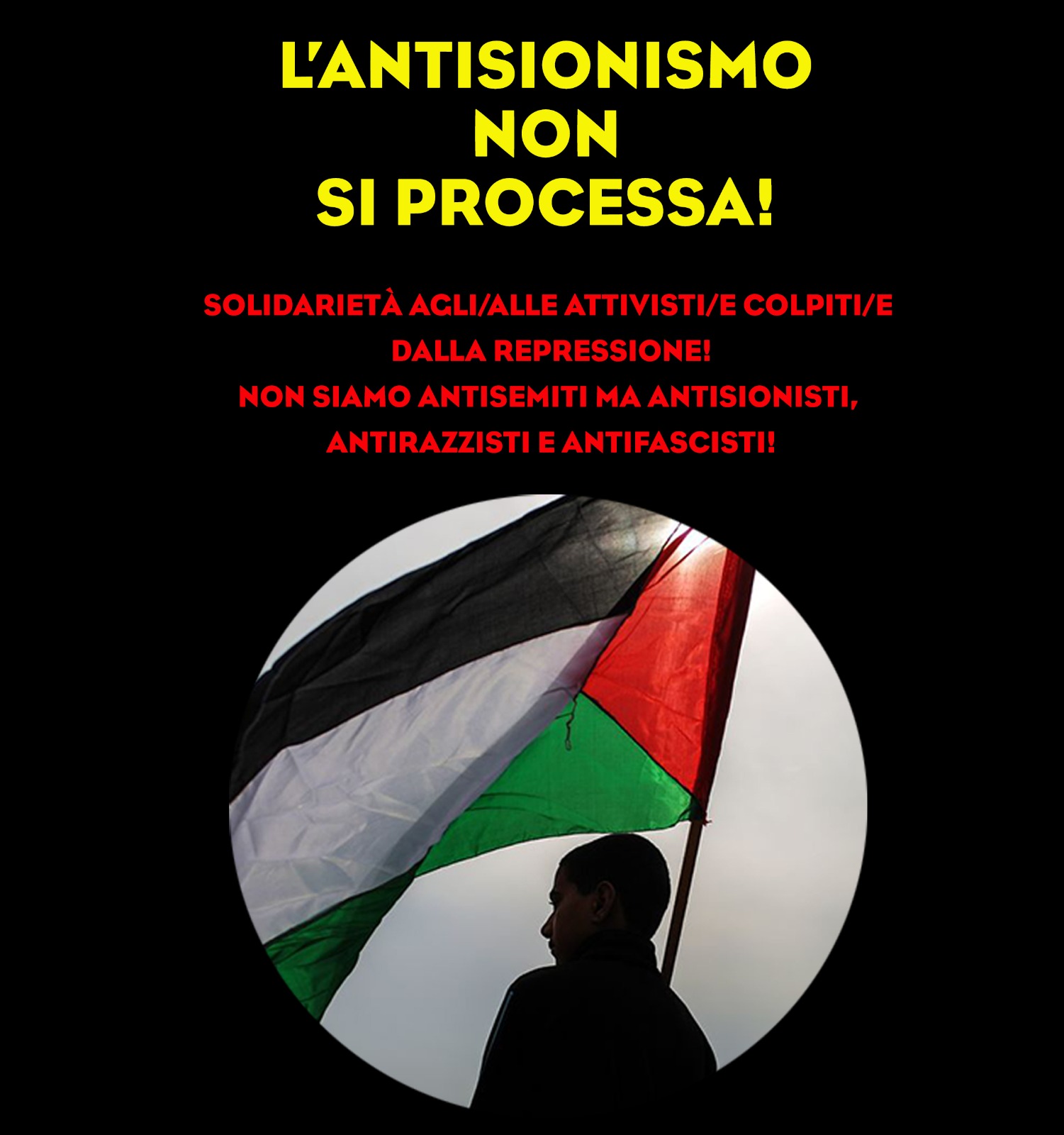 Oggi, lunedì 11 Gennaio 2021, a Milano inizia il processo ai/alle compagni/e solidali con il popolo palestinese. Così come negli Usa e in molti paesi europei, dove la critica a Israele è già reato, contestare l’entità sionista e le sue politiche significa essere fermati, denunciati, processati.Leggi tutto »Non siamo antisemiti