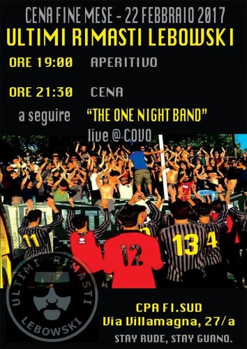 Mercoledì 22 FebbraioCena di Fine Mese URL“One Night Band” al CovoLeggi tutto »Mercoledì 22 FebbraioCena di Fine Mese URL“One Night Band” al Covo