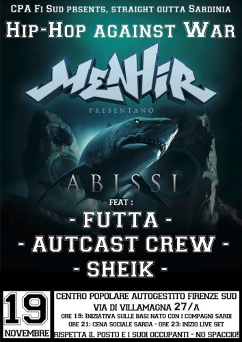 Sabato 19 NovembreStraight Outta SardiniaHip-Hop Against WarLeggi tutto »Sabato 19 NovembreStraight Outta SardiniaHip-Hop Against War