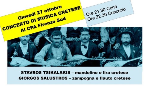 Giovedì 27 OttobreConcerto di Musica CreteseLeggi tutto »Giovedì 27 OttobreConcerto di Musica Cretese