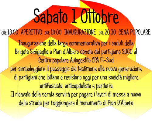 Sabato 1 OttobreInaugurazione della Targadi Pian d’AlberoLeggi tutto »Sabato 1 OttobreInaugurazione della Targadi Pian d’Albero