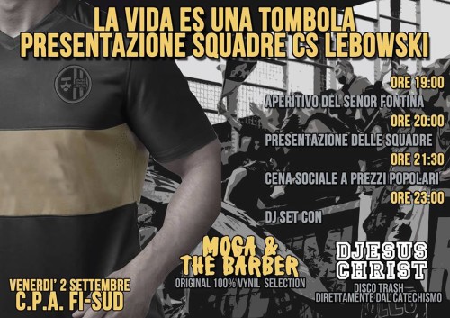 Venerdì 2 SettembrePresentazione CS LebowskiStagione 2016/17Leggi tutto »Venerdì 2 SettembrePresentazione CS LebowskiStagione 2016/17