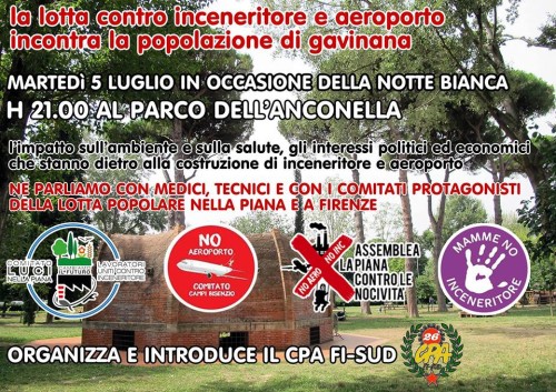 Martedì 5 LuglioInceneritore e Aeroporto:nocività e impatto ambientaleLeggi tutto »Martedì 5 LuglioInceneritore e Aeroporto:nocività e impatto ambientale