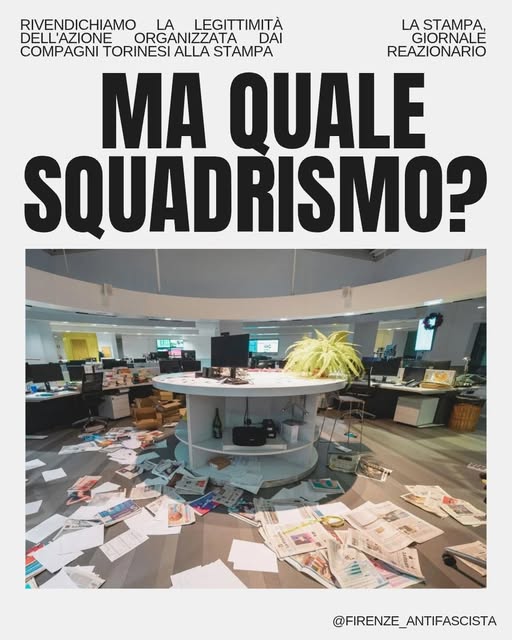 Respingiamo al mittente l’uso strumentale dell’accusa di “squadrismo” rivolto ai compagni e alle compagne di Torino che hanno organizzato l’azione alla redazione de La Stampa.