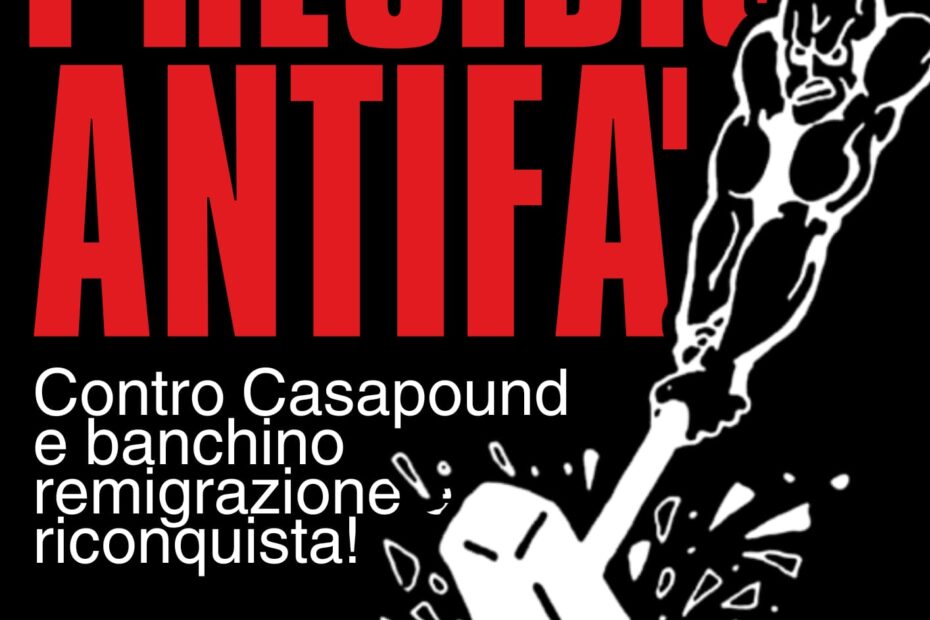 Domani nella sede di Casapound in Via dei Vanni proveranno a raccogliere le firme per una proposta di legge che vuole legalizzare la deportazione forzata degli “immigrati”. Non possiamo far passare sotto silenzio questi banchini, non possiamo permettere che questi fascisti si affaccino in città senza contrapporre la resistenza antifascista.