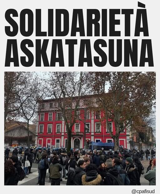 Alle prime ore di questa mattina a Torino è scattata un’operazione di polizia con perquisizioni in casa di alcuni compagni ma soprattutto ad Askatasuna, che è stato sgomberato.