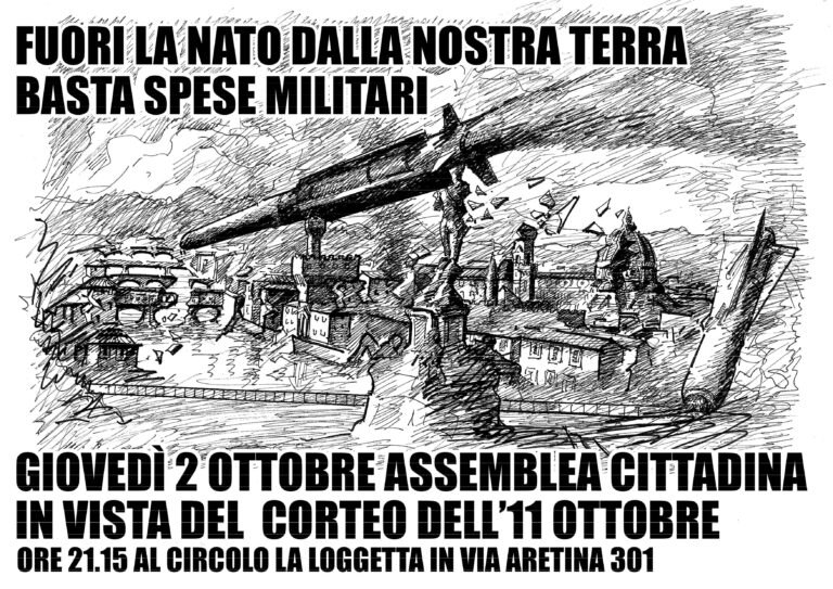 Con la presente vi invitiamo a partecipare e intervenire all’assemblea cittadina convocata dal Comitato NO Comando NATO per Giovedì 2 Ottobre al Circolo La Loggetta di via Aretina.