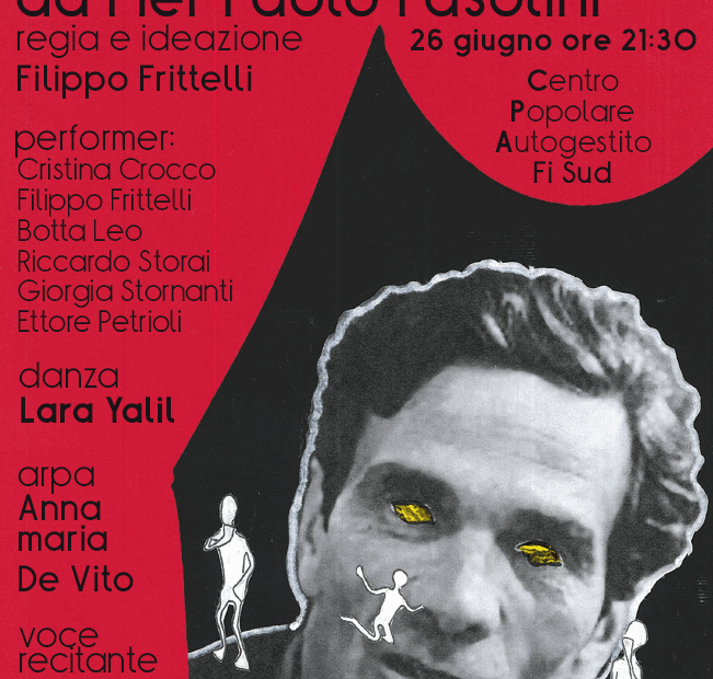 Nel 50° anniversario della morte di uno dei più grandi poeti italiani del 900, Pier paolo Pasolini, facciamo riferimento a lui, come ad un Virgilio moderno. Prendendo a prestito il titolo dall’ultima sua raccolta di liriche, TRASUMANAR E ORGANIZZAR il progetto vuole restituire in forma performativa attraverso l’azione teatrale e la musica dal vivo il messaggio del poeta in un itinerario compositivo che consenta di navigare nell’oggi con la stessa intemperanza e lo stesso stupore che si avrebbe dal partecipare ad un matrimonio triste o ad un funerale allegro.
