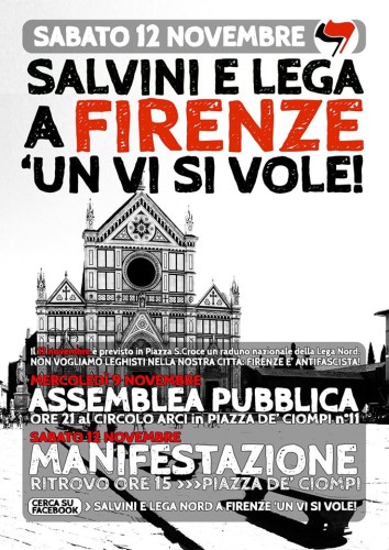 Sabato 12 NovembreCorteo “Salvini e Lega Nord:a Firenze un vi si vole!”Leggi tutto »Sabato 12 NovembreCorteo “Salvini e Lega Nord:a Firenze un vi si vole!”